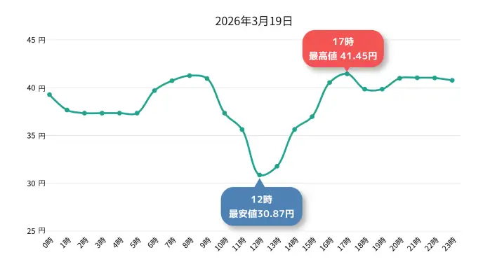 全体的な傾向としては、電気の供給量が多い日中は安くなりやすく、需要が高まる夜間は高くなるケースが多いものの、必ずしも毎日同じ動きになるとは限らないのです。